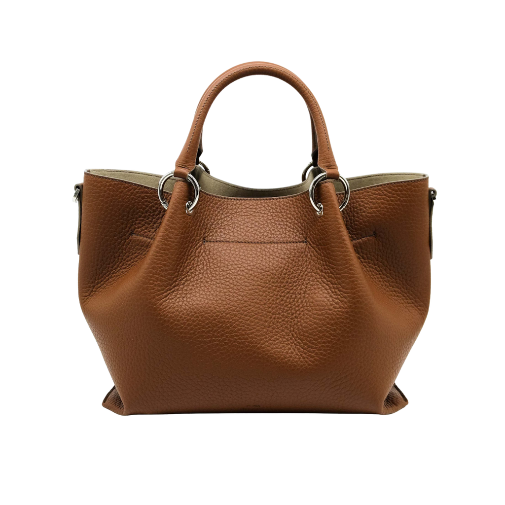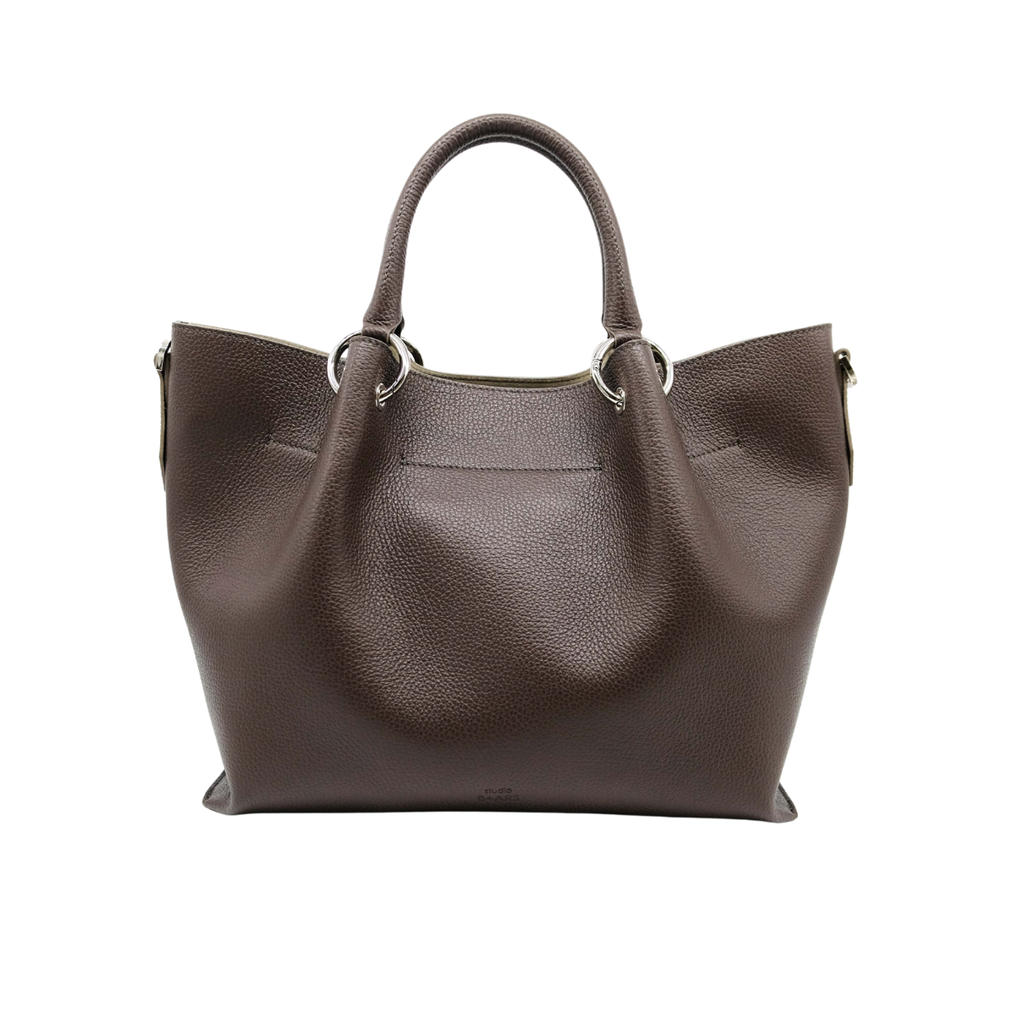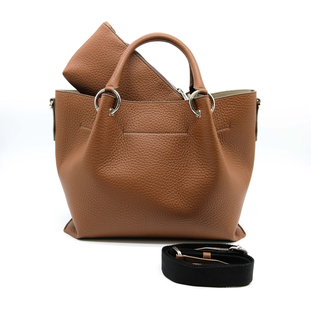 BEATRICE è un'ottima scelta per chi cerca un tocco di eleganza e funzionalità. Tutta in vera pelle martellata con interno scamosciato, ha due manici e anelli dorati. Questa borsa di ampie dimensioni è accessoriata con chiusura a zip superiore, una pochette in pelle estraibile e una tracolla sganciabile, offrendo versatilità e praticità. L'accessorio perfetto per ogni occasione.