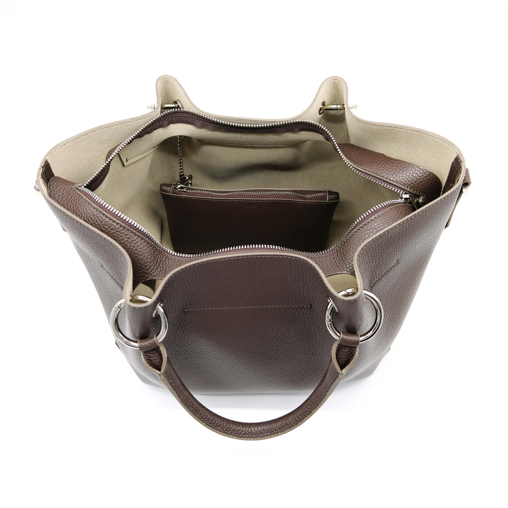 BEATRICE è un'ottima scelta per chi cerca un tocco di eleganza e funzionalità. Tutta in vera pelle martellata con interno scamosciato, ha due manici e anelli dorati. Questa borsa di ampie dimensioni è accessoriata con chiusura a zip superiore, una pochette in pelle estraibile e una tracolla sganciabile, offrendo versatilità e praticità. L'accessorio perfetto per ogni occasione.