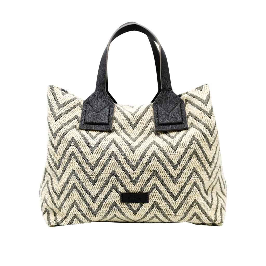 LIZA L Wool è una borsa shopper ampia e funzionale realizzata in fibre di lana con disegno geometrico, che uniscono sostenibilità e resistenza. I due manici in pelle naturale garantiscono comfort e durata, mentre la chiusura superiore con bottone magnetico e gancio assicura sicurezza e praticità. Dotata di una tracolla sganciabile per una versatilità d’uso ottimale, all’interno presenta una tasca supplementare in pelle per organizzare piccoli oggetti con eleganza ed una bustina portamonete estraibile. Un accessorio ideale per chi cerca stile consapevole e funzionalità.