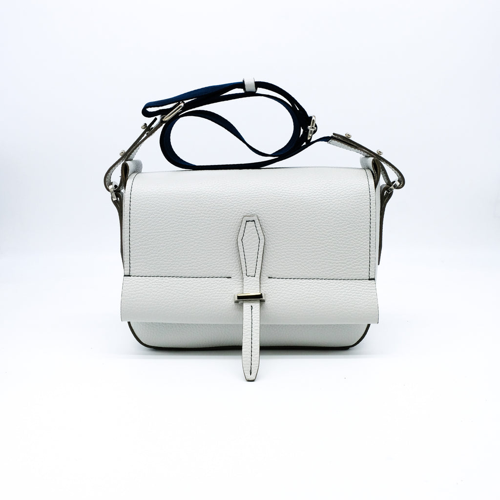 NINA M è una borsa a tracolla realizzata con attenzione ai dettagli, presenta uno scomparto principale protetto da una patta in pelle che garantisce sicurezza e praticità. La tracolla regolabile consente di indossarla comodamente a spalla, adattandosi a diverse occasioni. Perfetta per chi ricerca un accessorio versatile che combina funzionalità e raffinatezza stilistica.